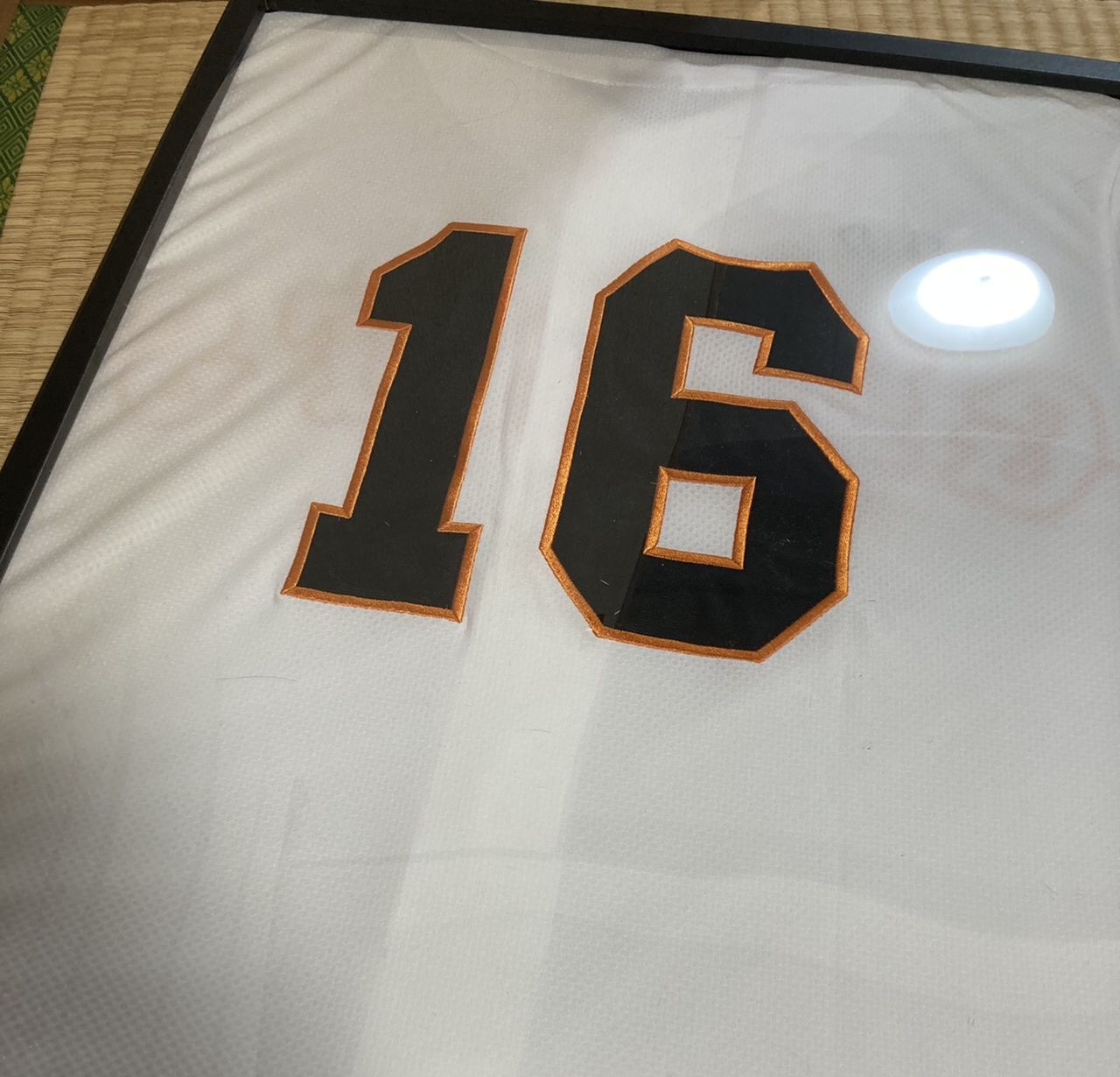 先日、ダ○ソーにて購入したA2サイズの額で背番号16のユニを額装しました。